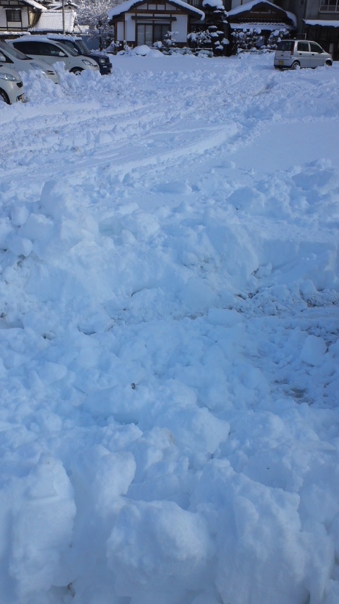 爆弾低気圧が残していった物は大量の雪… とある駐車場です。 車の轍が沢山。