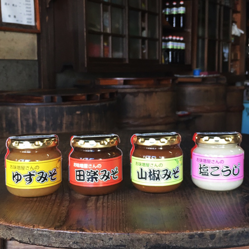 塩こうじと、風味豊かな山椒みそ、田楽みそ、ゆずみそのセットです。